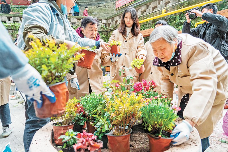 居民和志愿者一起動(dòng)手,打造自己心中的社區(qū)花園。記者 崔力 攝/視覺重慶