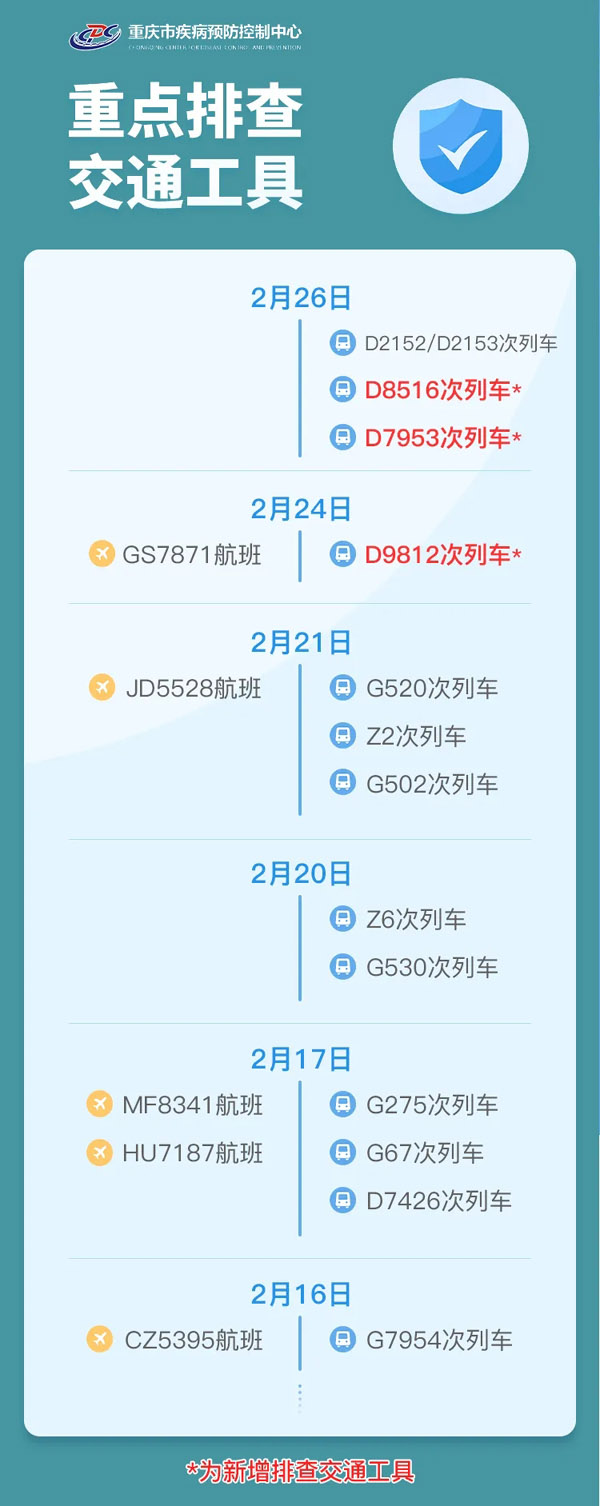 重慶疾控3月1日新增排查:涉及4地、3趟列車