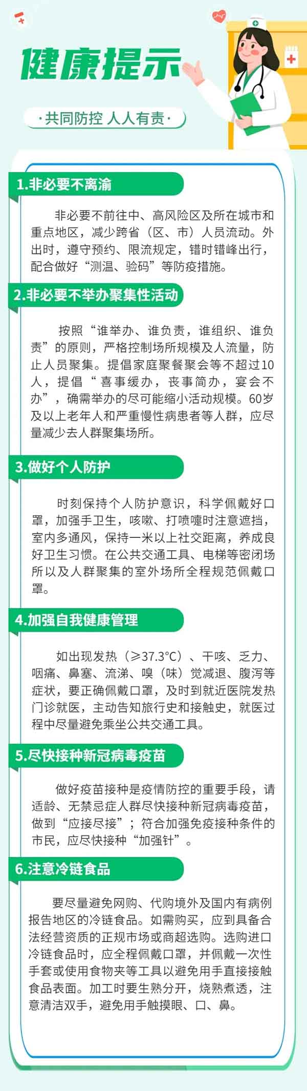 重慶市疾控中心還提醒,有重點時段和地區(qū)旅居史、搭乘過對應時段交通工具的來渝返渝人員,在做好個人防護的前提下,第一時間向社區(qū)(村)、單位、賓館酒店民宿等報告或通過“社區(qū)報告二維碼”填報個人信息,按要求配合做好核酸檢測、隔離觀察、健康監(jiān)測等防控措施。