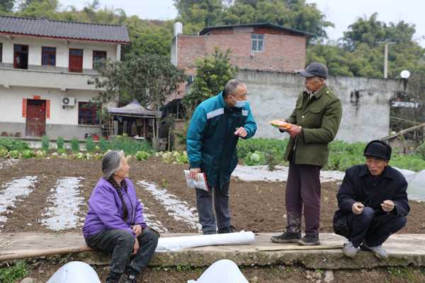人民網(wǎng)重慶3月1日電 初春時(shí)節(jié),重慶市潼南區(qū)石鏡村村民曾玉先幾人正忙活著給新苗打窩,遠(yuǎn)遠(yuǎn)瞧見一抹熟悉的綠色身影,心內(nèi)便有了八九分篤定,放下鋤頭喚道:“嘿,定是老陳來了!你瞧,土都平好了,就等你給我?guī)в衩追N呢!”