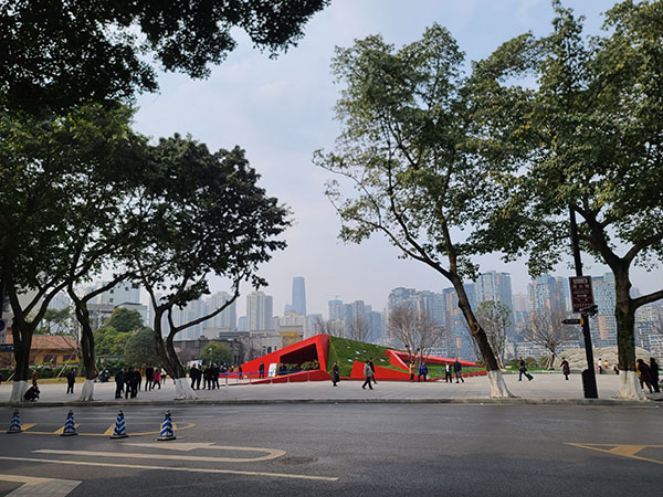 日前,軌道2號線曾家?guī)r站新建升級的2號出入口開通。該項(xiàng)目位于重慶市中山四路北段起始端交叉路口處,外形如一顆紅色五角星,配合地面鋪裝的立體星星燈飾,美觀又大氣。