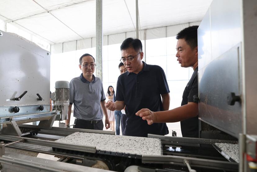 2021年9月,于會(huì)文調(diào)研興隆智慧大棚高速智能播種線、智能選苗補(bǔ)苗機(jī)器人。渝北區(qū)委宣傳部供圖