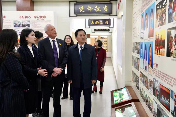 英國駐重慶總領(lǐng)事館總領(lǐng)事Stephen Ellison與相關(guān)人員參觀學(xué)校。重慶一中供圖