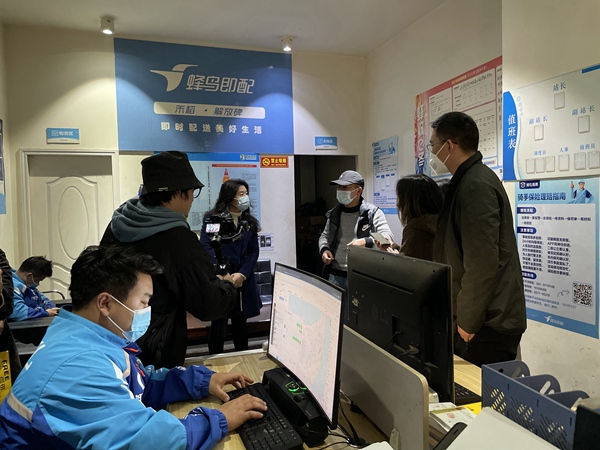 消費(fèi)者代表在餓了么配送站點(diǎn)了解情況。渝中區(qū)市場(chǎng)監(jiān)管局供圖