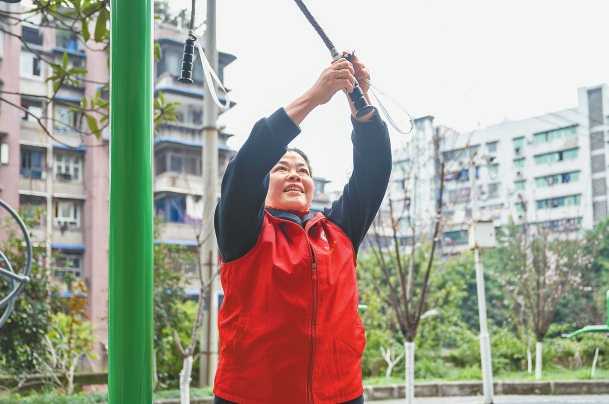 3月2日,“社區(qū)文明代言人”周道慧正在社區(qū)修理健身設(shè)施。記者 解小溪 攝