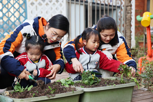 老師帶領(lǐng)孩子們一起認(rèn)識(shí)中草藥。朝陽(yáng)幼兒園供圖