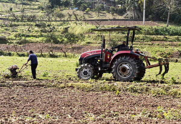 南沱鎮(zhèn)治坪村,村民用農(nóng)耕機(jī)翻新土地。黃河攝