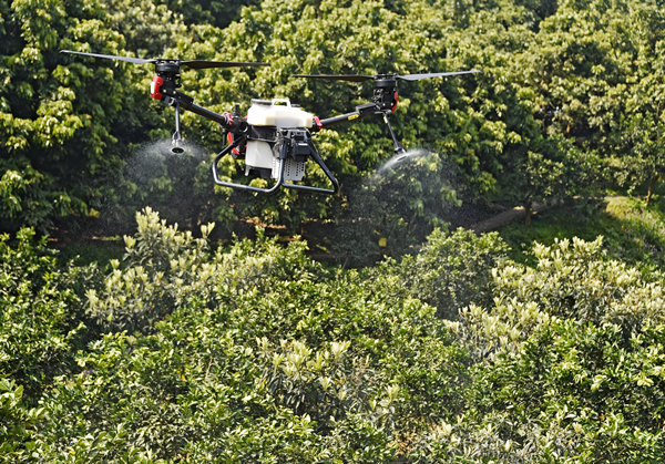 南沱鎮(zhèn),村民用無人機(jī)進(jìn)行果樹春管。黃河攝