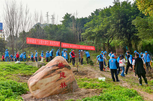 大渡口區(qū)八橋鎮(zhèn)“文明行為促進月”暨義務植樹活動在萬有社區(qū)公園舉行。楊宇豪攝