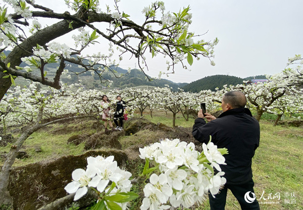 人民網(wǎng)重慶3月12日電 (劉政寧)春光明媚,正是踏青賞花的好時(shí)節(jié)。近日,位于重慶市合川區(qū)雙鳳鎮(zhèn)的萬余畝李花、桃花競(jìng)相綻放,李花如同白雪覆蓋在枝頭,點(diǎn)綴于青山綠野之間,吸引不少市民游客紛紛前來賞花觀景、游園踏青。