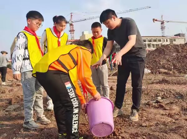 人民網(wǎng)重慶3月14日電 近日,墊江玉鼎小學(xué)組織開展“參觀新校區(qū) 播種希望向未來”植樹節(jié)系列活動。學(xué)校組織師生、校外輔導(dǎo)員參觀新校區(qū),介紹新校區(qū)規(guī)劃、建設(shè)情況,并在新校區(qū)勞動實(shí)踐基地種植柑桔、桃樹、李樹100余株,為新校區(qū)添綠增彩。