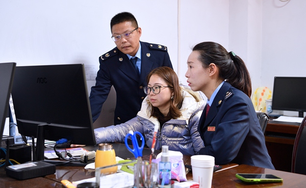 重慶市萬州區(qū)稅務(wù)局工作人員輔導(dǎo)重慶艾格潤(rùn)數(shù)控機(jī)床有限公司財(cái)務(wù)人員辦理緩稅申請(qǐng)。重慶市稅務(wù)局供圖