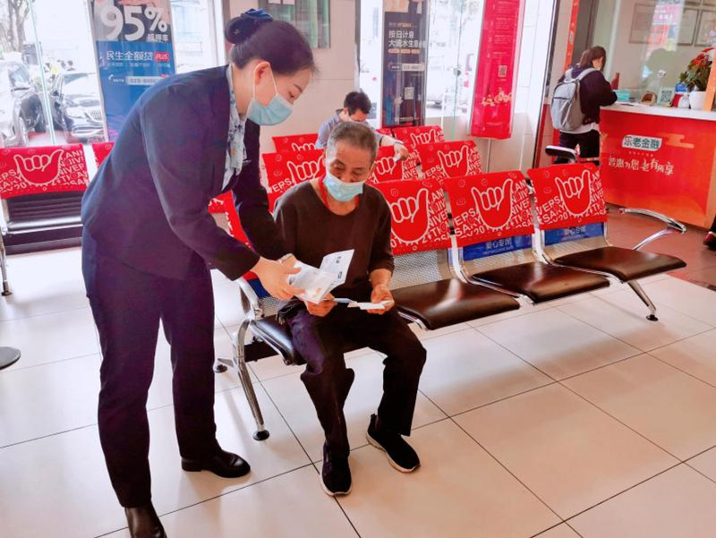 民生銀行重慶分行員工為客戶宣傳消保知識。民生銀行重慶分行供圖