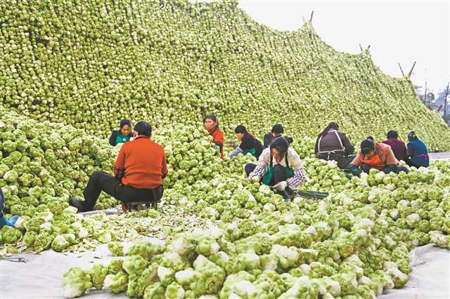 二渡村村民對采收后的青菜頭進(jìn)行初加工。(本版圖片均由受訪者提供)