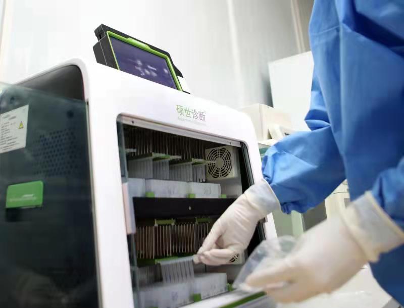 醫(yī)務(wù)人員在核酸檢測(cè)實(shí)驗(yàn)室插入磁套(防污染)。陳仕川攝