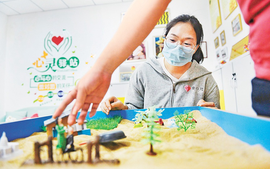三月十六日,九龍坡區(qū)石坪橋街道,心理咨詢師正在給一名中學生進行心理輔導。記者 崔力 攝\視覺重慶