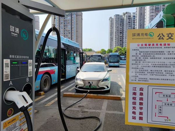江南樞紐公交站場充電樁。郭旭攝