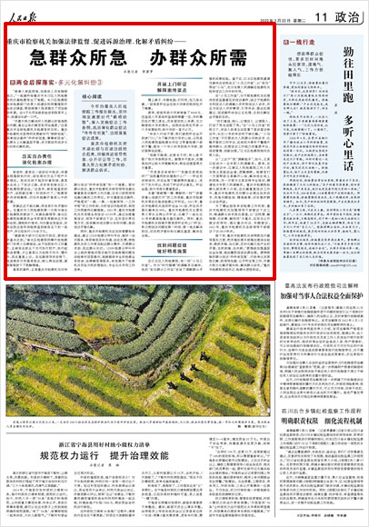 “盡最大努力解決好人民群眾的急難愁盼問題,真正讓他們感受到司法溫度!边@是重慶市各級檢察機關(guān)檢察官的目標。重慶市檢察機關(guān)堅持和發(fā)展新時代“楓橋經(jīng)驗”,探索信訪案件“件件有回復(fù),事事有回音”,從源頭上化解基層矛盾,多方聯(lián)動形成多元化糾紛化解機制。