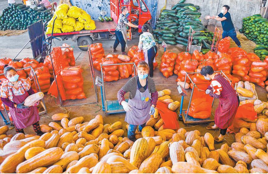 3月18日,重慶雙福國際農(nóng)貿(mào)城,商戶打包蔬菜準備發(fā)往市內(nèi)各大超市和農(nóng)貿(mào)市場。(資料圖片)記者 齊嵐森 攝/視覺重慶