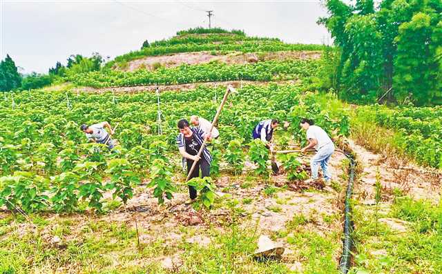 三月二十五日,大足區(qū)中敖鎮(zhèn)觀寺村,村民們?cè)谏浠乩镞M(jìn)行管護(hù)。記者 顏安 攝\視覺重慶
