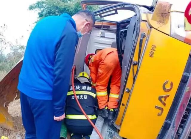 貨車側(cè)翻,男子被困副駕駛幾近昏迷……