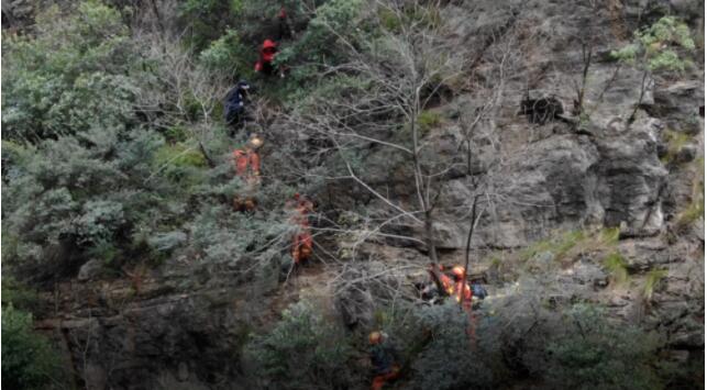 中途有多處垂直陡峭區(qū)域,非常危險(xiǎn)。消防指戰(zhàn)員立即使用攜帶的繩索等裝備,搭建安全通道,為兩名被困測(cè)繪員身上套上腰結(jié),緩慢通過(guò)危險(xiǎn)區(qū)域。全部人員于中午12點(diǎn)成功撤退至山腳安全地帶。