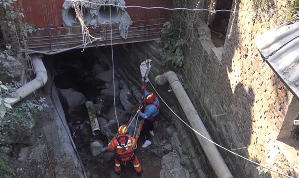 男子跌入10米深溝 重慶消防出動吊臂施救