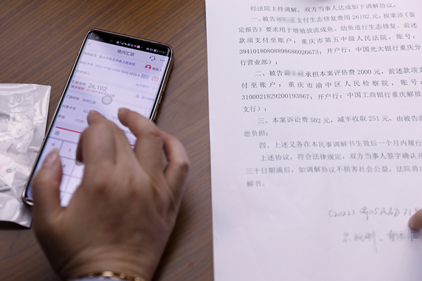 同時(shí),在自愿、合法且不損害社會(huì)公共利益的前提下,經(jīng)法庭主持調(diào)解,其中非法買賣長(zhǎng)江野生魚的三案被告吳某、謝某波和劉某全深刻認(rèn)識(shí)到生態(tài)破壞的嚴(yán)重后果,自愿接受公益訴訟起訴人的全部訴訟請(qǐng)求,即吳某賠償35053元,謝某波賠償26102元,劉某全賠償70842元,均用于增殖放流成魚、幼魚進(jìn)行生態(tài)修復(fù),并分別承擔(dān)2000元鑒定費(fèi)。三被告均當(dāng)庭將調(diào)解協(xié)議履行完畢。其余兩案將經(jīng)法院進(jìn)一步審理后擇期宣判。