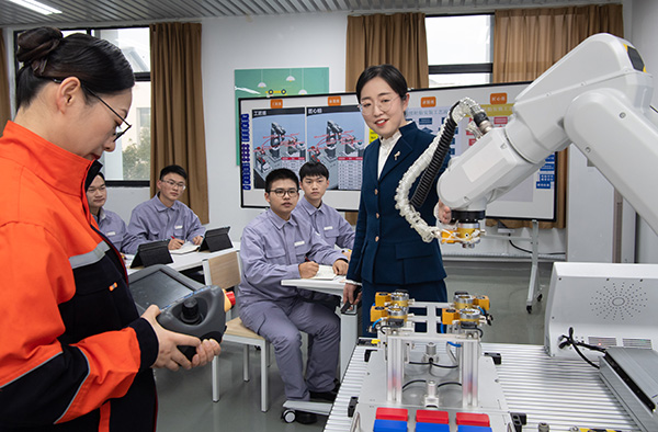 梁燕講解如何準(zhǔn)確控制機(jī)械手臂姿態(tài)。重慶工程職業(yè)技術(shù)學(xué)院供圖