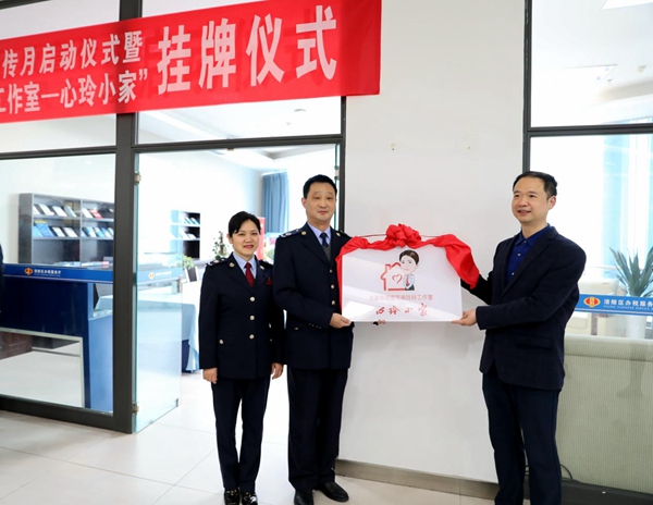 涪陵區(qū)委宣傳部常務(wù)副部長(zhǎng)陳熙堯和涪陵區(qū)稅務(wù)局黨委書記、局長(zhǎng)張建清為“心玲小家”工作室掛牌。吳楠攝