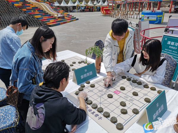 象棋青團、麻將青團、青團糖葫蘆、青團炸串、小花青團……當日中午,在美心紅酒小鎮(zhèn)景區(qū)紅酒廣場, 各種造型的青團美食,吸引了眾多游客爭相品嘗。尤其是象棋青團,不僅可以吃,還可以下象棋,更是吸引了大家的目光,紛紛上前一試。
