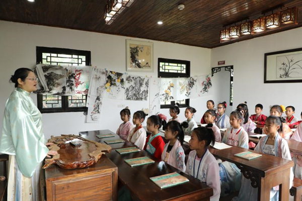 在書院里,孩子們誦讀國(guó)學(xué)經(jīng)典,學(xué)習(xí)禮儀、孝道、家風(fēng)知識(shí),了解經(jīng)典故事,在體驗(yàn)活字印刷的過程中領(lǐng)悟古人智慧。