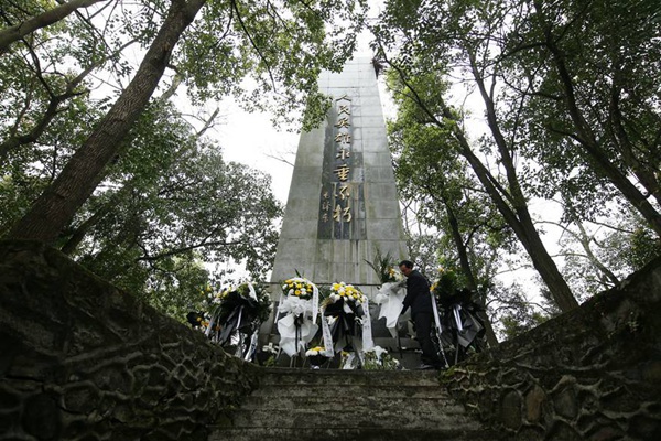2006年9月9日,在重慶市黔江區(qū)革命烈士陵園,程紹光瞻仰紅軍烈士墓。楊敏攝