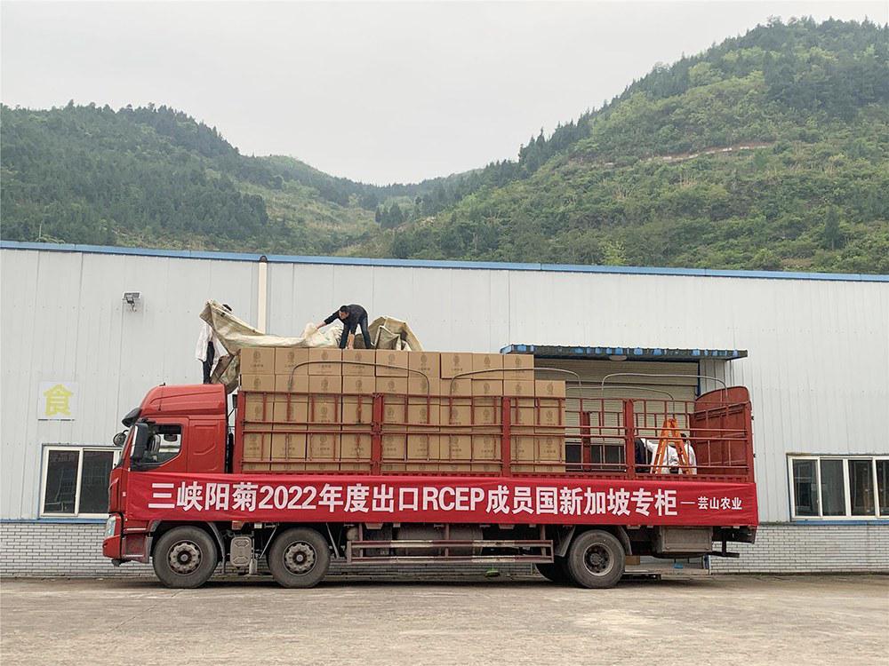 伴隨長(zhǎng)長(zhǎng)的汽笛聲,近日,一輛滿(mǎn)載三峽陽(yáng)菊的大卡車(chē)從云陽(yáng)縣紅獅鎮(zhèn)蕓山農(nóng)業(yè)加工廠(chǎng)緩緩駛出,這意味著三峽陽(yáng)菊已連續(xù)四年成功出口。同時(shí),這也是今年一月區(qū)域全面經(jīng)濟(jì)伙伴關(guān)系協(xié)定(RCEP)生效以來(lái),三峽陽(yáng)菊實(shí)現(xiàn)的首次出口。