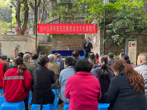 人民網(wǎng)重慶4月8日電 “要想不被騙,請(qǐng)聽(tīng)我來(lái)講……”4月7日,重慶渝中區(qū)兩路口街道桂花園新村社區(qū)“百姓講壇”啟動(dòng),兩路口派出所社區(qū)警長(zhǎng)苗慶松在社區(qū)狀元步道上現(xiàn)場(chǎng)開(kāi)講。