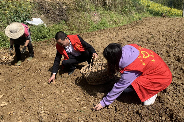 舟白街道新時代文明實踐所搶種小黃姜。黔江區(qū)委宣傳部供圖