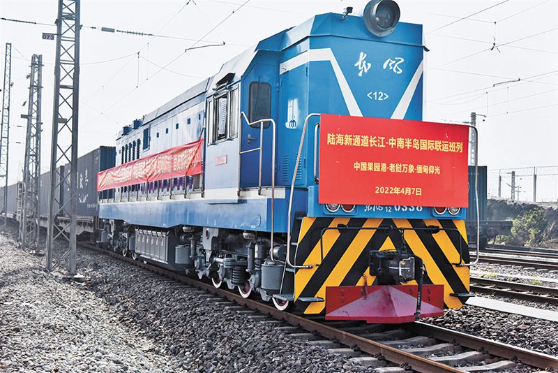 4月7日,陸海新通道長江—中南半島國際聯(lián)運(yùn)班列,從重慶果園港發(fā)出。這是果園港承接的首趟到緬甸的國際多式聯(lián)運(yùn)班列,通過江鐵公海聯(lián)運(yùn)串聯(lián)長江經(jīng)濟(jì)帶—中南半島。