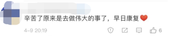 還有網(wǎng)友留言說:“原來是去做偉大的事了,早日康復(fù)。”