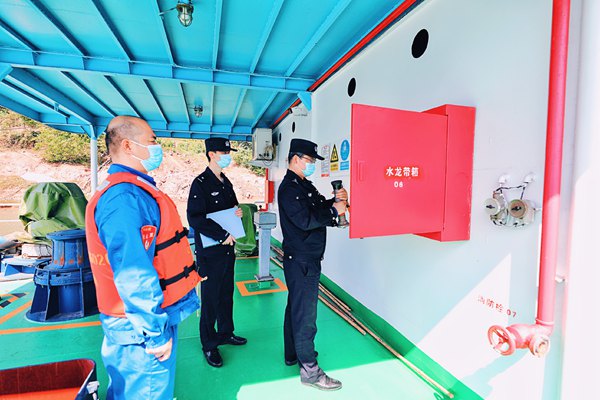 為確!拔逡弧惫(jié)日期間長江萬州段水域消防安全形勢持續(xù)穩(wěn)定,近日來,長江航運公安局萬州分局水上消防支隊以強化工作落實為著力點,聯(lián)合分局萬州派出所深入轄區(qū)對水上加油站開展消防安全專項檢查。