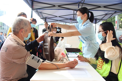“嬢孃,你這個(gè)血壓有點(diǎn)高哦,平時(shí)還是要多注意一下。”“你有這種情況的話說(shuō)明可能有胃炎了,最好后面去醫(yī)院檢查一下?!被顒?dòng)現(xiàn)場(chǎng),工作人員仔細(xì)回答市民們的健康咨詢。