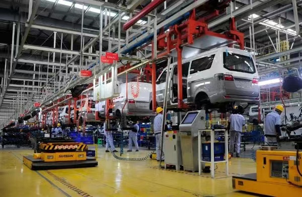 華晨鑫源重慶汽車有限公司整車生產(chǎn)現(xiàn)場(chǎng)。何乾健攝