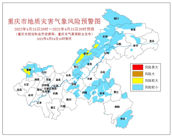 4月24日16時(shí),重慶市規(guī)劃和自然資源局、重慶市氣象局聯(lián)合發(fā)布全市地質(zhì)災(zāi)害氣象風(fēng)險(xiǎn)預(yù)警。