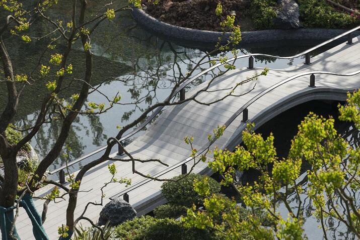據(jù)了解,新鷗鵬巴川郡在景觀設(shè)計(jì)上采用了宋氏古典園林的運(yùn)用風(fēng)格,注重中軸對(duì)稱,特意規(guī)劃形成“和悅門、雅鏡園、聽泉榭、四水堂、和雅亭”五重歸家儀式感,營造了兩軸兩界園林結(jié)構(gòu)。圍繞兩軸,從入口處到軸線上的各園景,小橋流水、亭臺(tái)樓閣、名貴植物,融合成一幅美麗的畫卷。宋式“飛虹橋”的水上造景,出自享譽(yù)盛名的“香山幫”手工砌制,橋面石材鋪陳寓意中國傳統(tǒng)二十四節(jié)氣,拱形如虹,寓意步步高升。