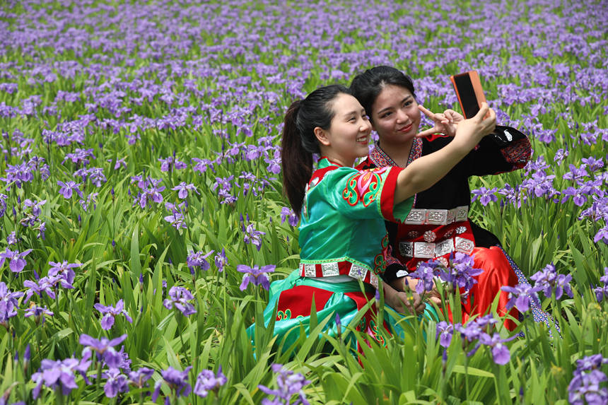 紫色的鳶尾花把田園裝扮得格外美麗。趙勇攝
