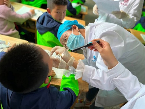 為不耽誤學(xué)生的學(xué)習(xí)時(shí)間,宣講結(jié)束后,醫(yī)務(wù)人員分別為三年級(jí)和四年級(jí)共十個(gè)班級(jí)的500余名學(xué)生進(jìn)行口腔檢查,并為需要的小朋友進(jìn)行窩溝封閉。檢查過(guò)程中,很多小朋友不停向醫(yī)務(wù)人員提出“如何保護(hù)牙齒、長(zhǎng)了蟲(chóng)牙怎么辦……”等各種問(wèn)題,均得到了細(xì)致耐心的解答。看到同學(xué)們對(duì)口腔健康知識(shí)充滿(mǎn)好奇心和求知欲,醫(yī)務(wù)人員十分開(kāi)心,稱(chēng)“這可能就是我們一直堅(jiān)持做口腔預(yù)防的動(dòng)力和意義吧”。