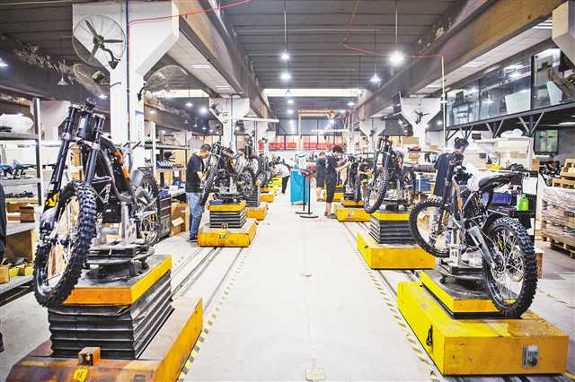 4月24日,在位于重慶市大渡口區(qū)文創(chuàng)產(chǎn)業(yè)園的重慶虬龍科技有限公司,工人在生產(chǎn)車間忙碌。該企業(yè)是一家主要研發(fā)生產(chǎn)電動越野摩托的新興企業(yè)。目前當?shù)卣c該企業(yè)聯(lián)合打造的蜂窩壩越野場,不僅是旅游休閑新項目,還能助力企業(yè)在重慶及周邊地區(qū)培養(yǎng)電動越野摩托的消費群體。