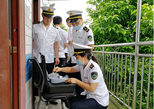 衛(wèi)生監(jiān)督員開展水質(zhì)快檢。江津區(qū)衛(wèi)生健康綜合行政執(zhí)法支隊供圖
