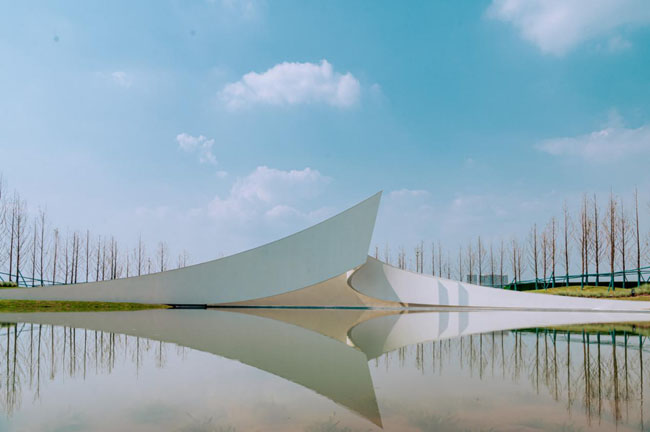 規(guī)劃館的主體建筑,以“人”字為設(shè)計(jì)靈感,形態(tài)極像重慶的山,“山腳”下便是悅來的水。在麓溪湖生態(tài)規(guī)劃館,市民可感受到“還水于民”的規(guī)劃理念。