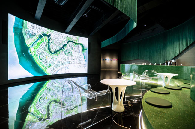 展館內(nèi),高清投影、VR演示和動(dòng)效視頻,展現(xiàn)麓溪湖片區(qū)產(chǎn)城景融合的規(guī)劃理念和兩江新區(qū)“一半山水一半城”的美麗圖景,以及麓溪湖水生態(tài)治理、麓溪湖山水城市示范區(qū)規(guī)劃。麓溪湖將會(huì)采用水生態(tài)調(diào)節(jié)系統(tǒng)工程的形式,遵循“調(diào)節(jié)、營(yíng)建、管養(yǎng)”的科學(xué)治理步驟,最終將形成約30萬方開闊水域,成為該區(qū)域核心景觀資源。