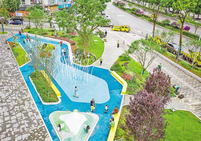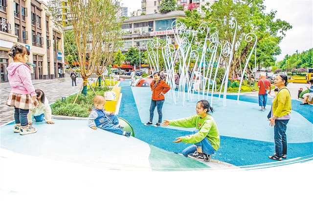 ▲4月28日,大渡口區(qū)百花村街頭小游園,市民帶著孩子開心玩耍。近年來,我市建設(shè)了不少口袋公園,截至4月底,僅中心城區(qū)就建成口袋公園50余個(gè)。